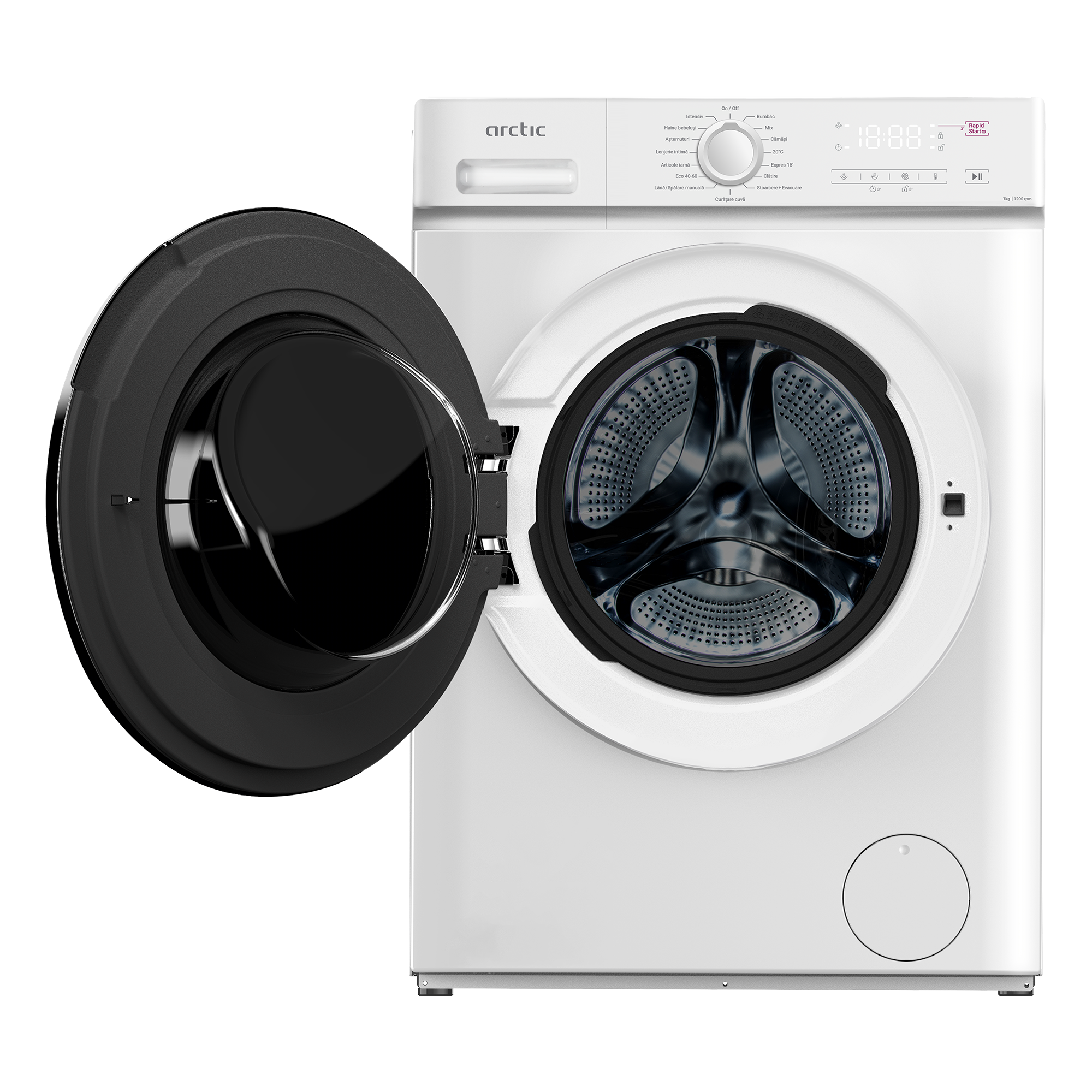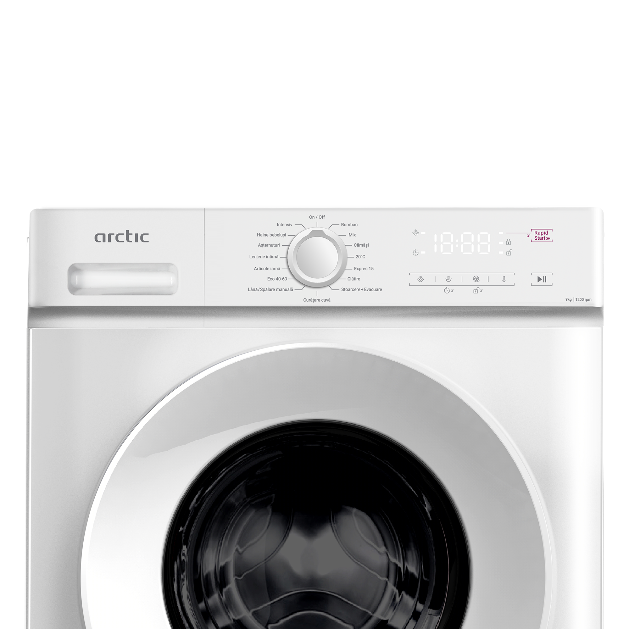 Datorita functiei speciale Add-In a masinii de spalat rufe Arctic puteti adauga orice articol de care ati uitat in primele 5 minute ale ciclului de spalare ales. Selectezi butonul pauza, adaugi articolele de imbracaminte uitate si reactivezi butonul pornire/pauza pentru continuarea ciclului de spalare